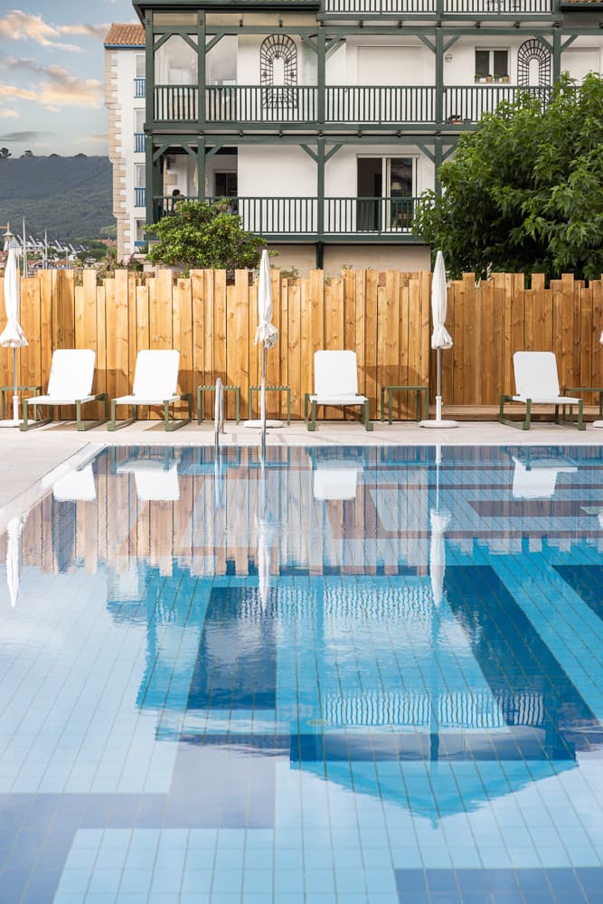 Enjoy our Chef’s cuisine for your lunches and dinners in an elegant, modern setting. Seasonal produce takes pride of place, most of which is sourced from the Basque Country. Our lounge bar welcomes you during the day and in the evening for sweet and savoury snacks, cocktails, tapas and aperitifs to enjoy as you relax together by the pool.
