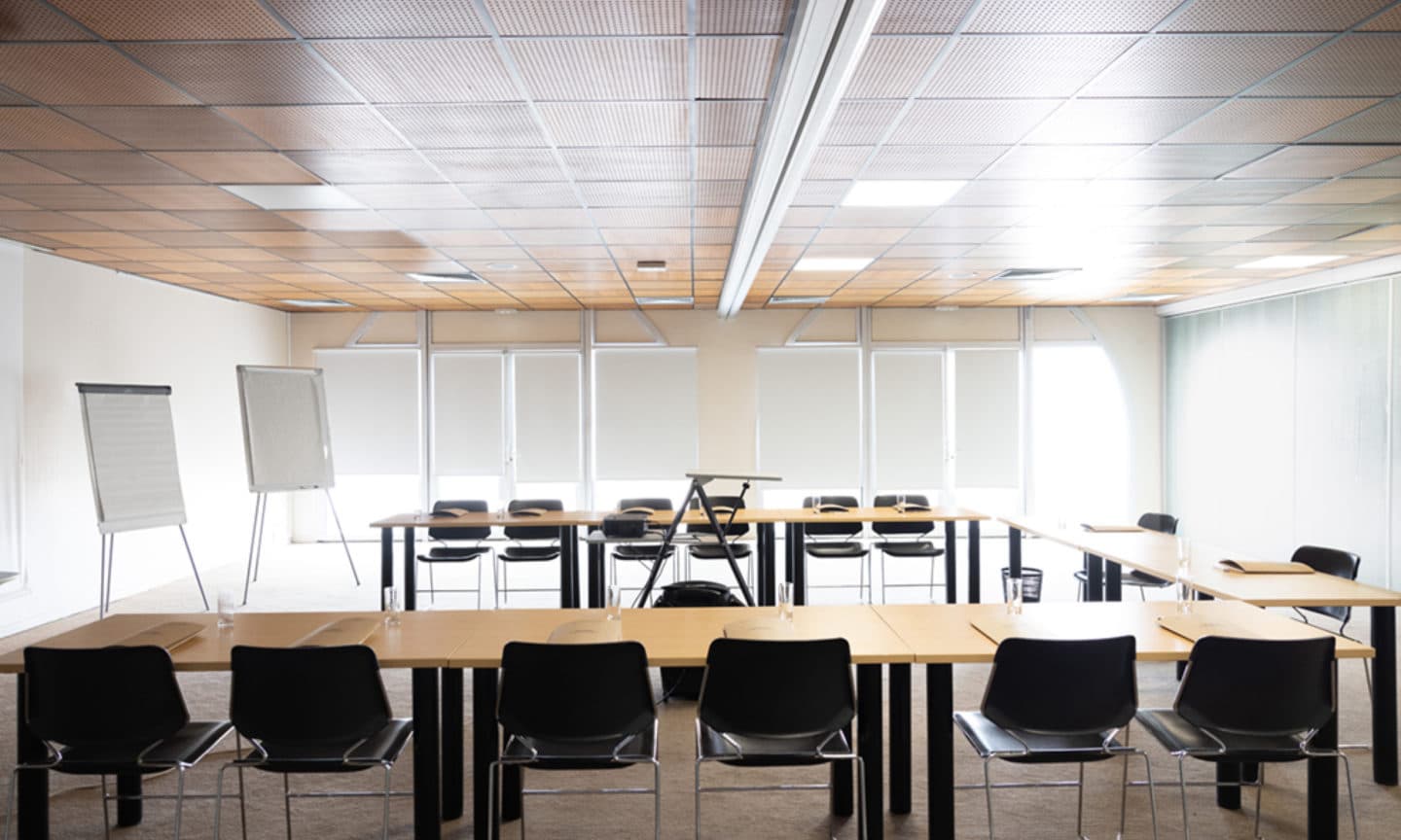 The Arroka room (73m2) can cater for up to 25 people in the classic U-shape and up to 60 people in the cinema configuration.